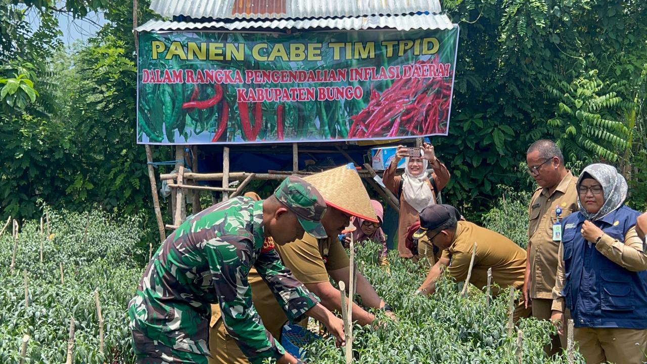 BUNGO_Pemerintah dusun tenam kecamatan tanah sepenggal kabupaten bungo bersama kelompok tani seberang tenam merayakan panen raya cabai dengan hasil yang cukup melimpah, selasa (24/09/2024) .