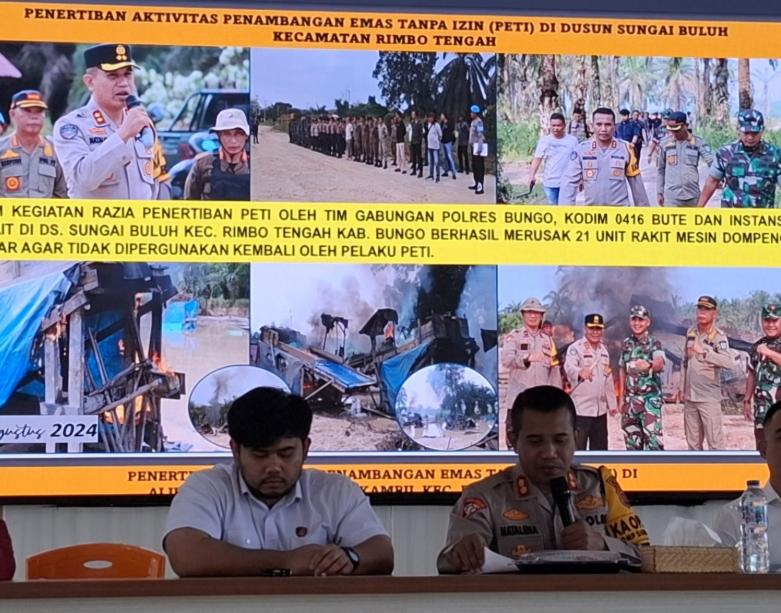 Meskipun rilisan penangkapan tambang ilegal oleh pihak polres bungo pada akhir tahun 2024,  sebanyak 21 alat dibakar di dusun sungai buluh,  bisa dikatakan hanya sebagian alat bukti yang dapat di musnahkan.